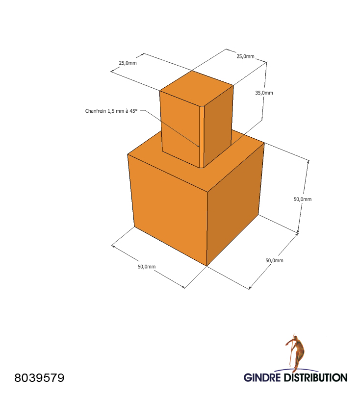 8039579 | 25 X 25 50 X 50 H=50 mm | voir schéma | Boite de 10 pièces |